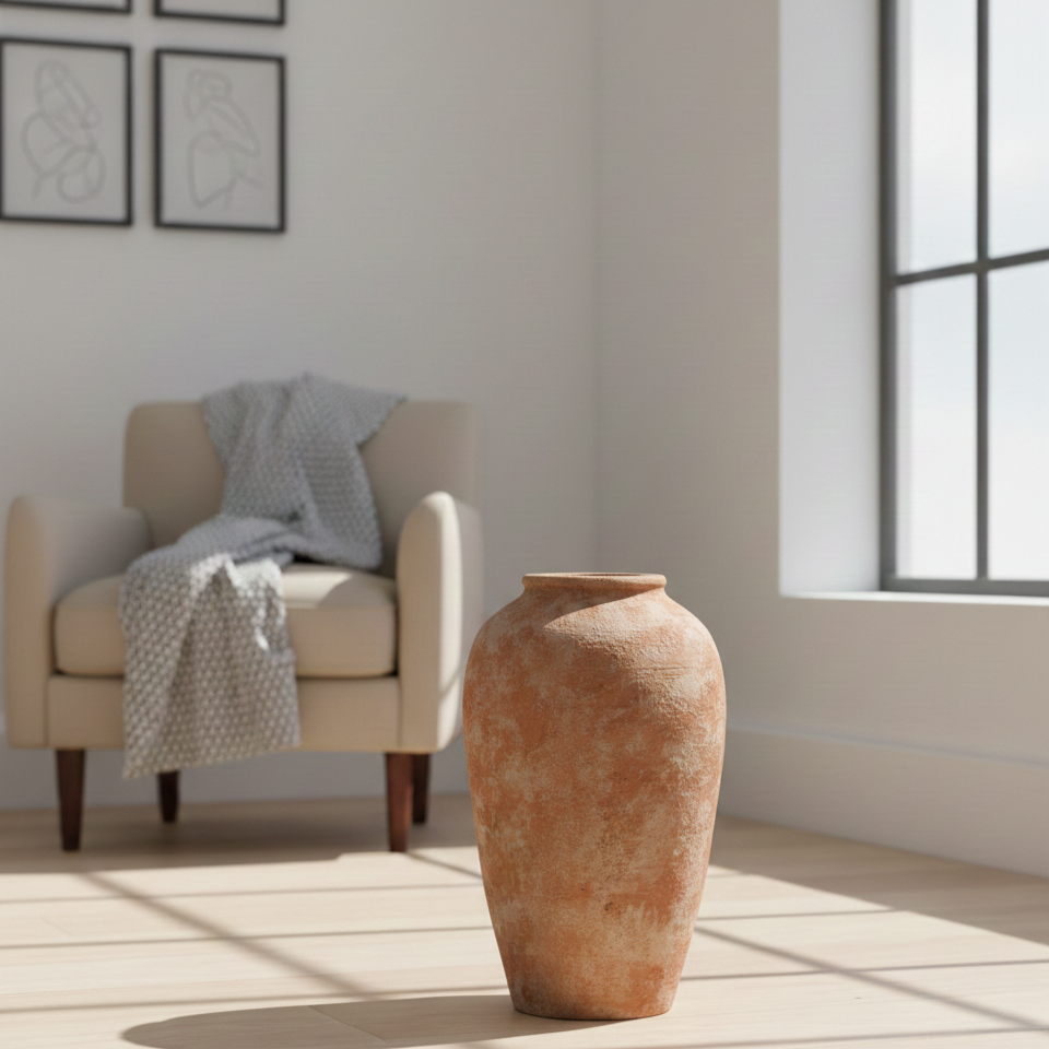 Authentic Earthy Texture: Handmade terracotta, celebrating traditional craftsmanship. A porous material that ages beautifully over time