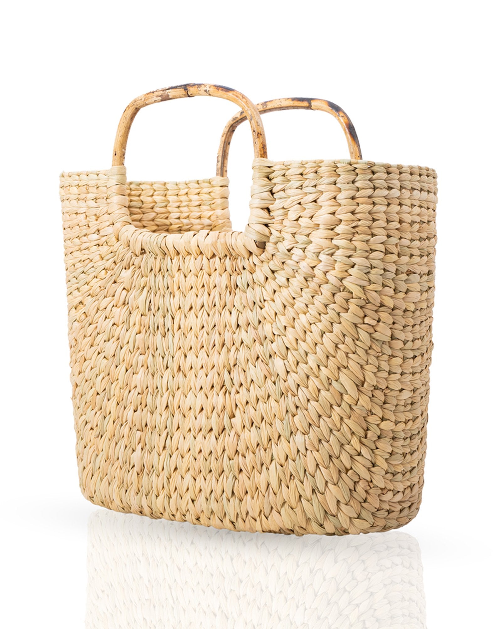 This handmade tote bag is woven from natural kauna grass, harvested sustainably in Manipur, India. Sized at 10″ x 8″ x 9″, it’s lightweight yet durable, with smooth bamboo handles. Its neutral design makes it perfect for daily use, shopping trips, or as a unique gift. Eco-friendly and handcrafted, it’s a stylish choice for those who appreciate handmade, sustainable products.