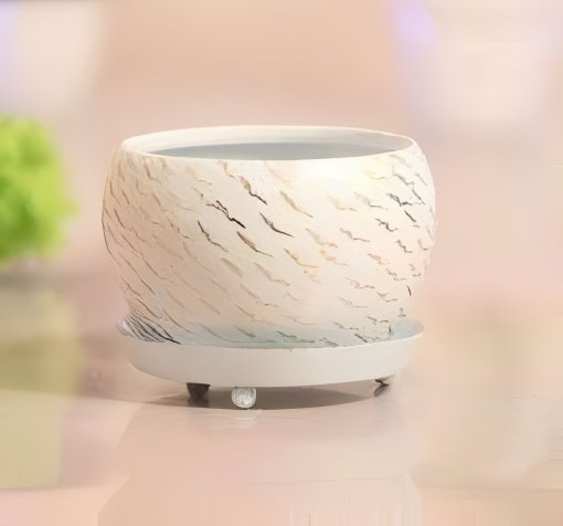 Round Glossy Metal Planter with Tray – Multicolor